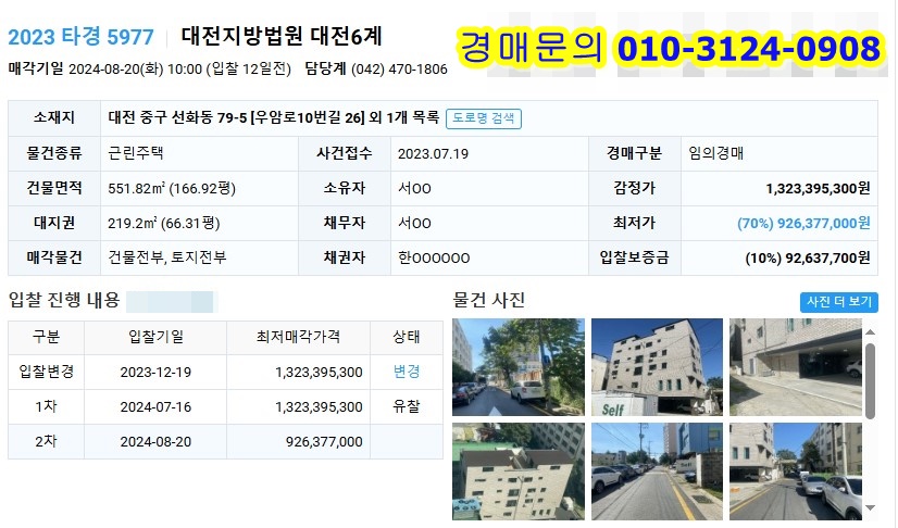 ₭대전근린주택경매 ą2023타경5977 ø대전 중구 선화동 79-5충청도지역/단독주택,다가구 2024. 8. 8. 15:37