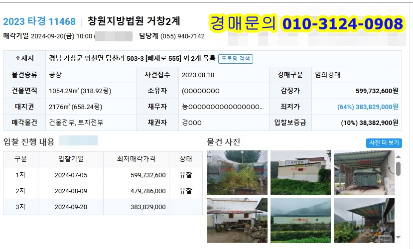 거창군 공장경매 2023타경11468 경남 거창군 위천면 당산리 503-3 식품공장경상도지역/근린시설,상가,공장 2024. 9. 10. 12:08