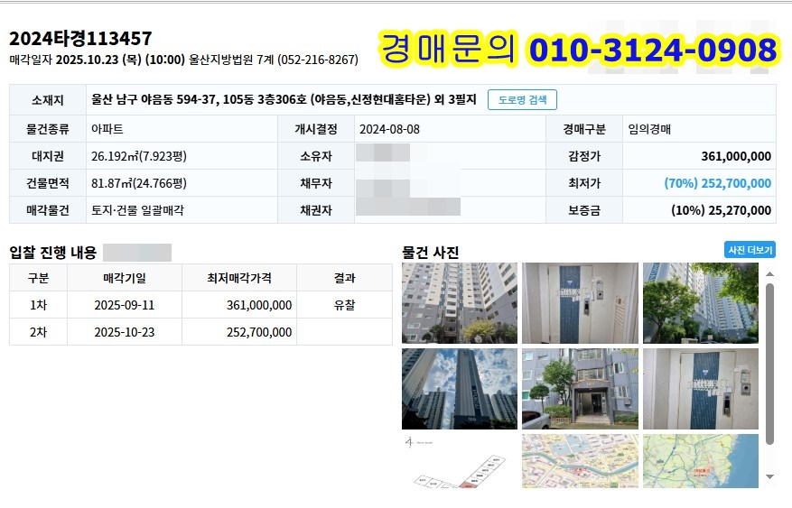 !울산 아파트경매 >울산시 남구 야음동 594-37 신정현대홈타운 105동 3층경상도지역/아파트,빌라,오피스텔 2025. 10. 14. 12:36