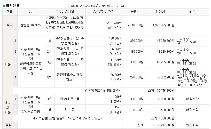 서울 관악구 근린주택경매#신림동 원룸경매$2018타경8874서울지역/단독주택,다가구 2019. 6. 28. 15:16