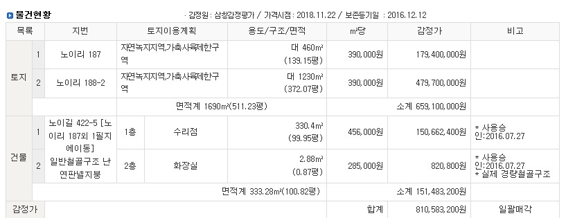 대구시 달성군 논공읍 노이리 187 외1필지 근린시설 창고경매